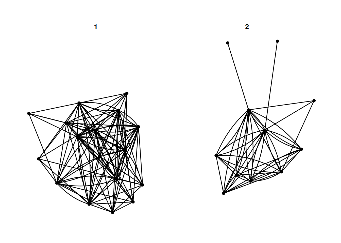 A related, but even trickier approach is to create network-level statistics for groups. For example, you might want to show the difference in density for each of the universities. To do that, we have to use morph from tidygraph. This makes a temporary representation of a graph, in our case, a temporary set of graphs split by university. We can then use the temporary representations to calculate statistics and then unmorph the statistics back into the original graph.