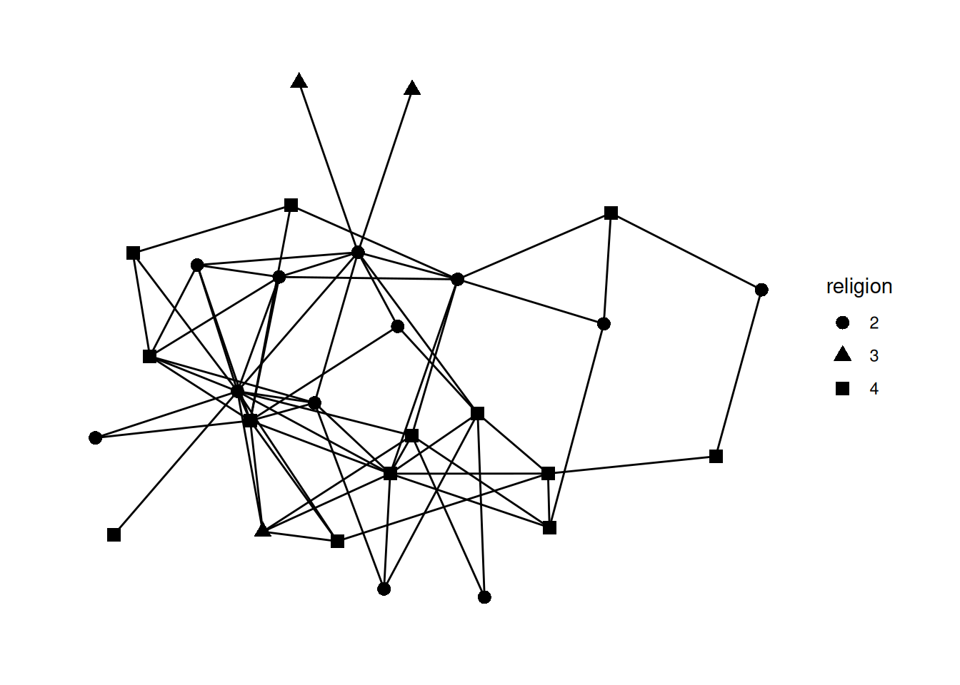 geom_node_point(aes(shape=religion), size = 3)Using "stress" as default layout