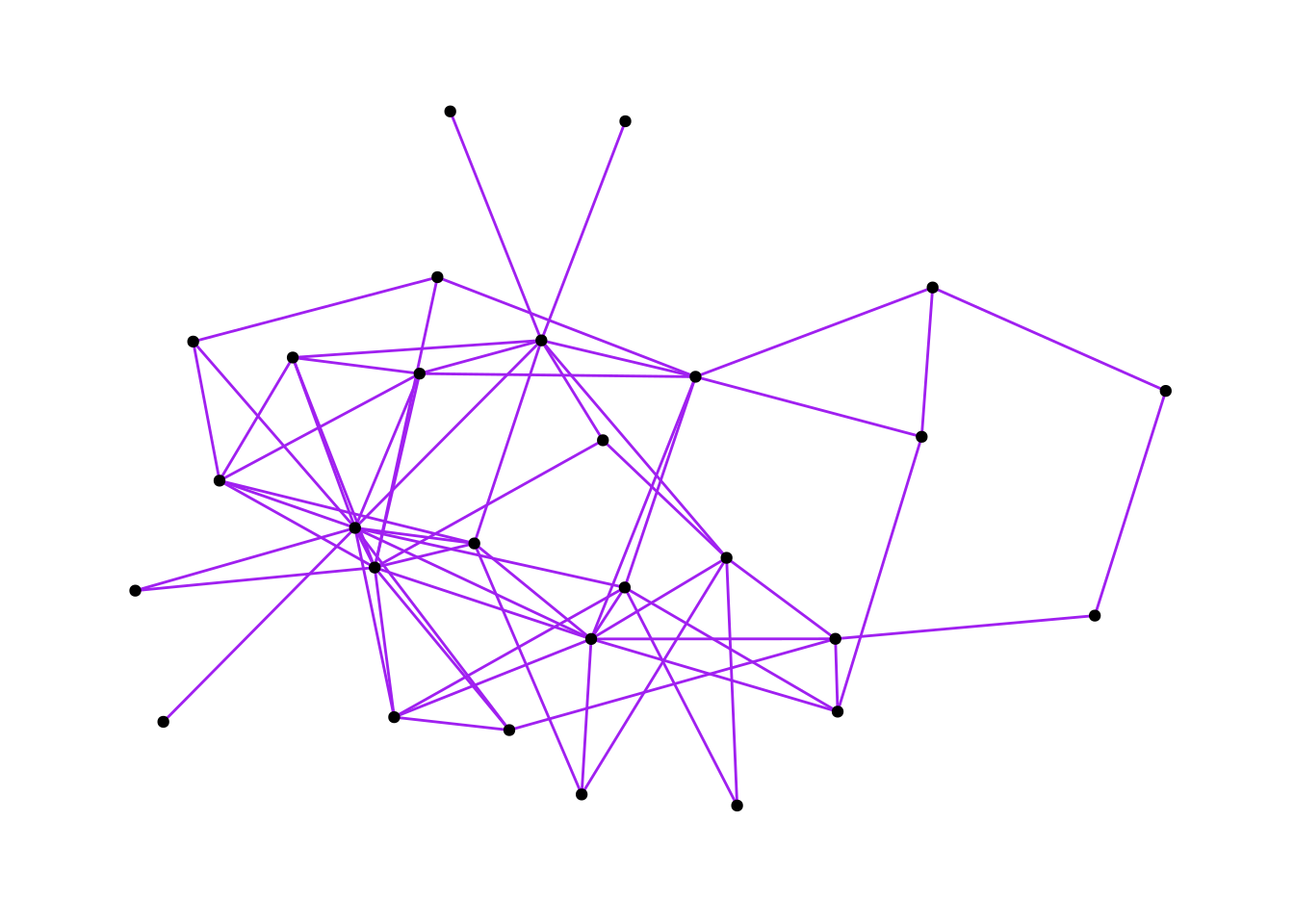 G graph and change the width of the edges to .5 and their color to purple.Using "stress" as default layout